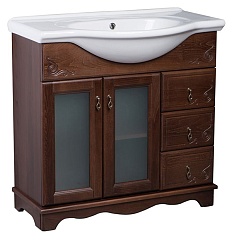 Bas Тумба с раковиной Варна 85 орех, вставки стекло, 3 ящика