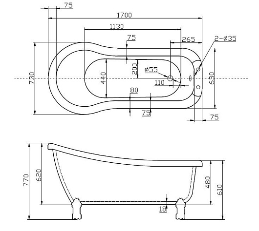 BelBagno Акриловая ванна BB20-BRN, ножки BB-LEG-LION-BRN