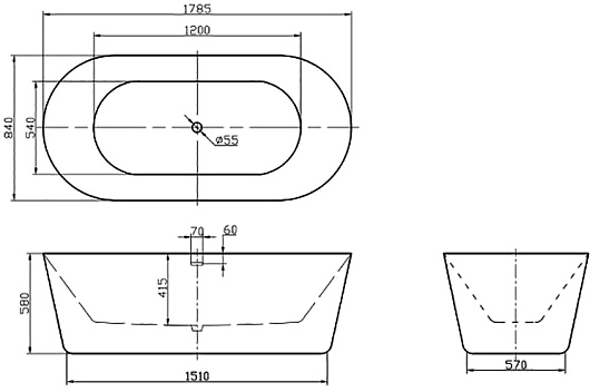 В комплекте: ванна, накладка на отверстие перелива (хром).