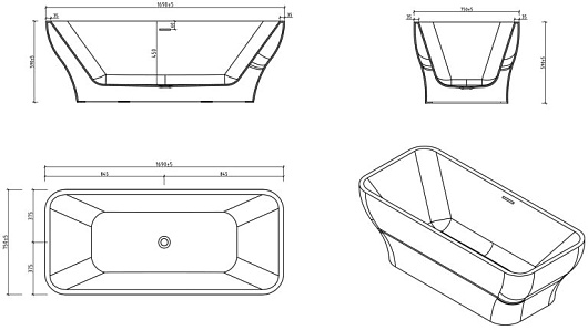 В комплекте: ванна, слив-перелив (хром), ножки.