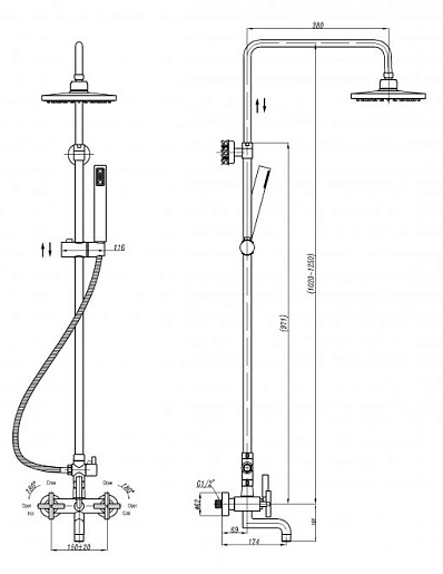 Душевая система:Описание: Душевая колонна со смесителем для ванны, верхним и ручным душем.