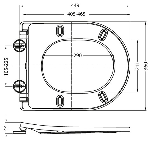 Сиденье быстросъемное, ультратонкое Slim, дюропласт, soft close, металическое крепление