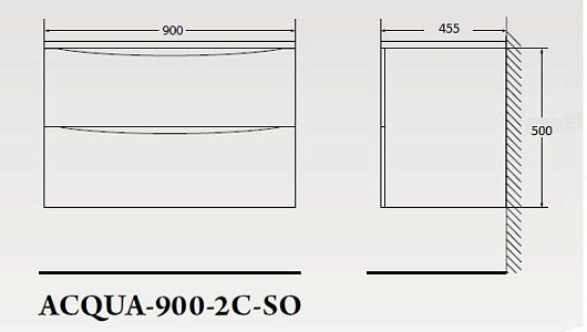 - База под раковину подвесная с двумя выкатными ящиками, с доводчиками, ACQUA-900-2C-SO-BL