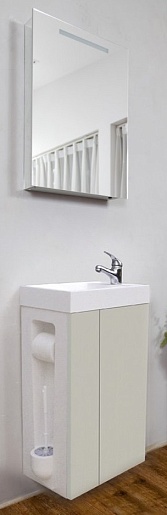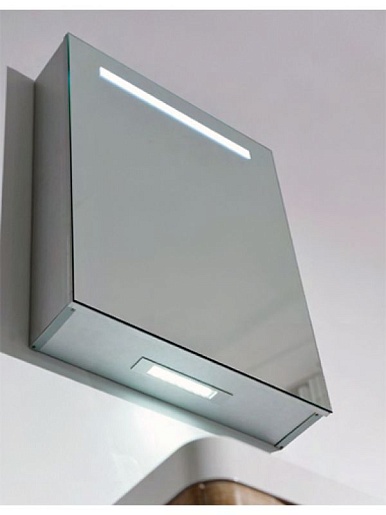 - Зеркало-шкаф SPC-1A-DL-BL-500 с нижней подсветкой и встроенной LED (светодиодной) подсветкой двери, с одной распашной дверью, двусторонним зеркальным полотном, со стеклянными полками, с розеткой и сенсорным выключателем, 8W, 220-240V, 500x130x700 мм.