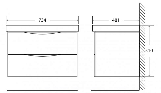 - База под раковину подвесная с двумя выкатными ящиками, с доводчиками, FLY-700-2C-SO-BL-P.