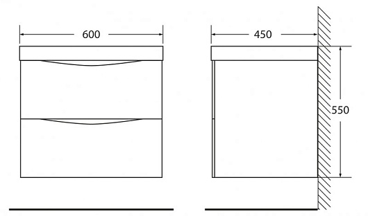 - База под раковину подвесная с двумя выкатными ящиками, с доводчиками, MARINO-600-2C-SO-PM-P