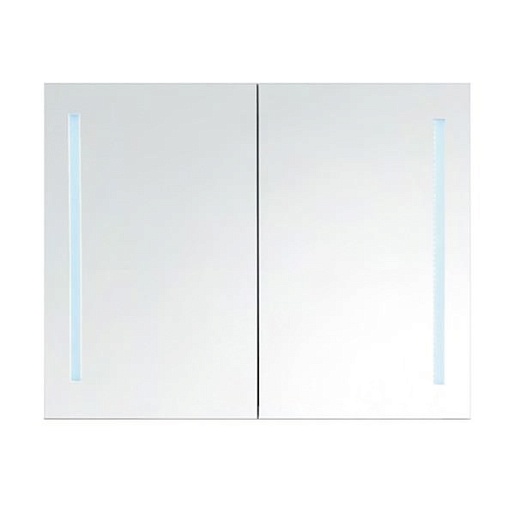- Зеркальный шкаф SPC-2A-DL-BL-900 с нижней и встроенной LED (светодиодной) подсветкой дверей, с двумя распашными дверьми с двусторонним зеркальным полотном, со стеклянными полками, с розеткой и сенсорным выключателем, 8W, 220-240V, 900x130x700 мм.