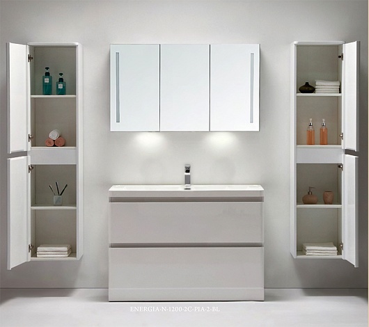 BelBagno Мебель для ванной напольная ENERGIA-N 1200 Bianco Lucido, зеркало-шкаф