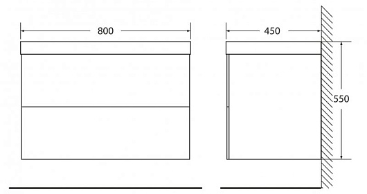- База под раковину подвесная с двумя выкатными ящиками, с доводчиками, REGINA-800-2C-SO-RB-BLUM