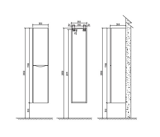 Описание: Шкаф подвесной, две распашные двери с доводчиками, две полки внутри, левостороннее открывание, 350x350x1700 мм.