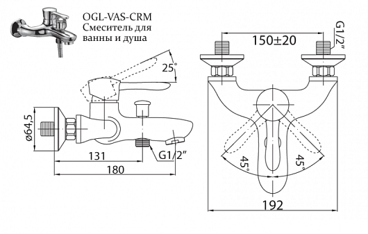 BelBagno Смеситель для ванны и душа OGLIO OGL-VASM-CRM