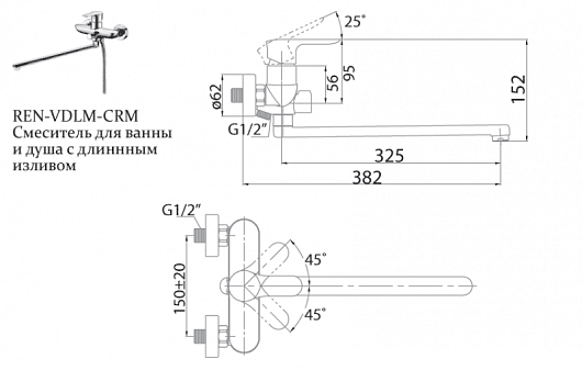 BelBagno Смеситель для ванны и душа RENO REN-VDLM-CRM