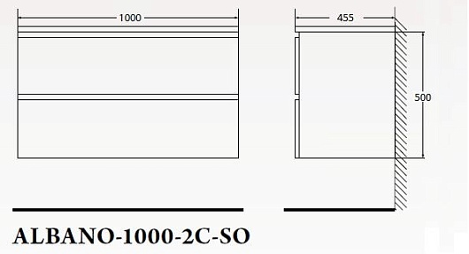- База под раковину подвесная с двумя выкатными ящиками, с доводчиками ALBANO-1000-2C-SO-RVB
