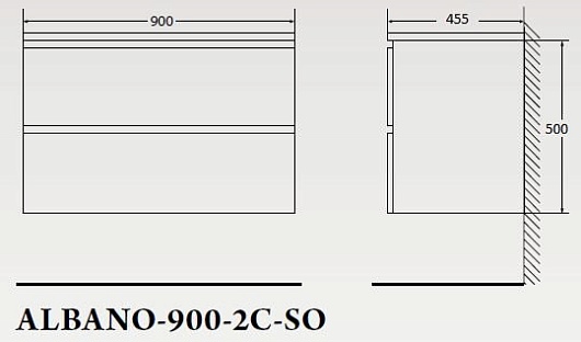 - База под раковину подвесная с двумя выкатными ящиками, с доводчиками ALBANO-900-2C-SO-CVG