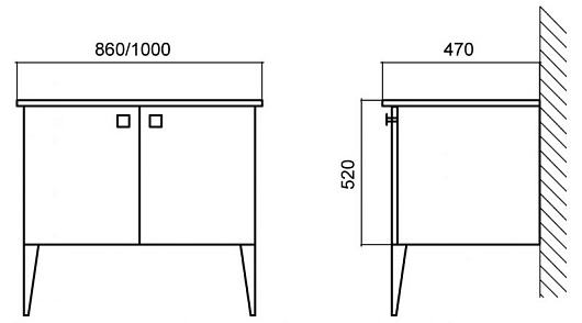 - База под раковину подвесная с дверцами, с доводчиками, 1000x470x500 мм.