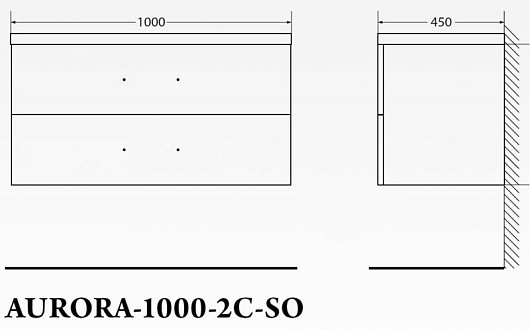 - База под раковину подвесная с двумя выкатными ящиками, с доводчиками AURORA-1000-2C-SO-CP