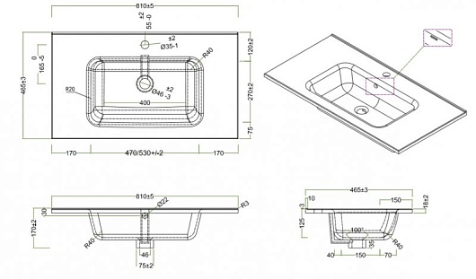 - База под раковину подвесная с двумя выкатными ящиками, с доводчиками KRAFT-800-2C-SO-RNN