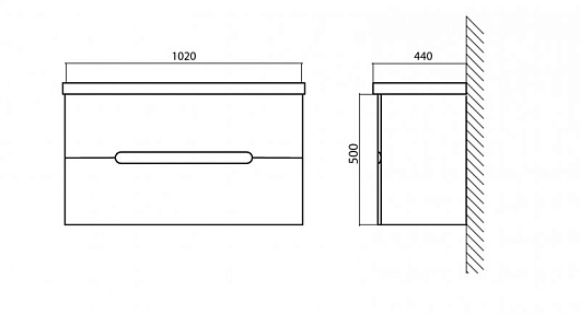 - База под раковину подвесная с двумя выкатными ящиками, с доводчиками, 1020x440x500 мм.