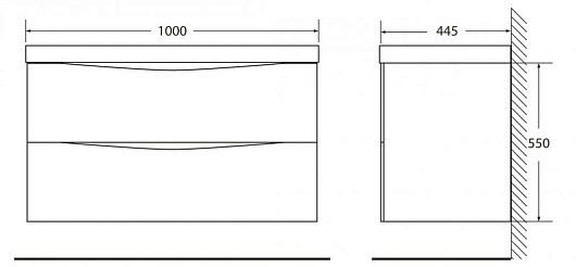 - База под раковину подвесная с двумя выкатными ящиками, с доводчиками MARINO-1000-2C-SO-CO-P