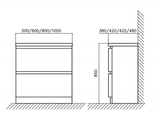 - База под раковину напольная с двумя ящиками, с доводчиками BB600FHC.