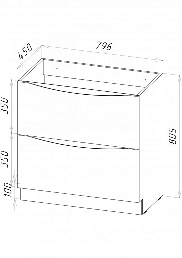 - База под раковину напольная с двумя выкатными ящиками, с доводчиками MARINO-800-2C-PIA-BL-P.