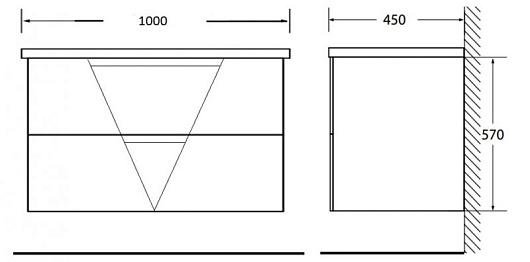 - База под раковину подвесная с двумя выкатными ящиками, с доводчиками VITTORIA-1000-2C-SO-BL