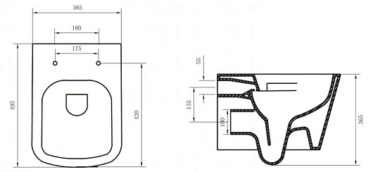 - Чаша унитаза подвесного BB120CH с креплением