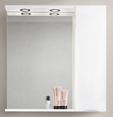 Описание: Шкаф зеркальный подвесной с одной распашной дверцей с доводчиками, с подсветкой, правосторонний.