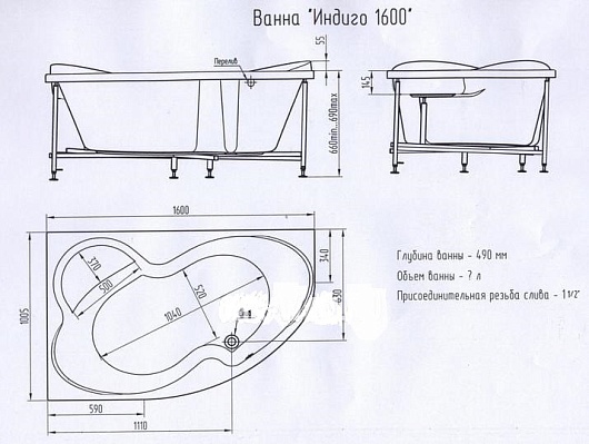 BellRado Акриловая ванна Индиго 1600 L