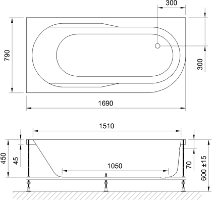 - Корпус ванны изготовлен из прочного сантехнического акрила и усилен армирующим слоем.