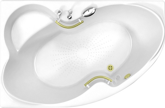 Акриловая ванна Индиго 168x110 R с гидромассажем с ручками белая/золото.