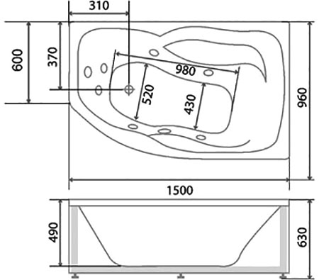 Акриловая ванна Сати 150x96 L с гидромассажем.