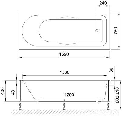 - Корпус ванны изготовлен из прочного сантехнического акрила и усилен армирующим слоем.