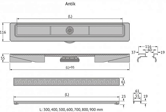BERGES Wasserhaus Душевой лоток B1 Antik 400 090122 хром матовый