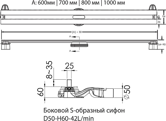 - Комплект регулировки решетки по высоте от 8 до 25 мм.