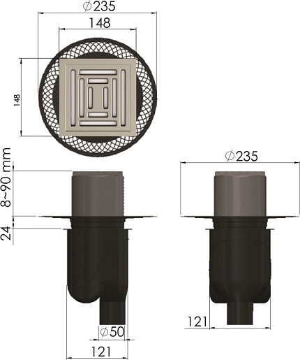BERGES Wasserhaus Душевой трап Platz Uno 150 090070 хром матовый