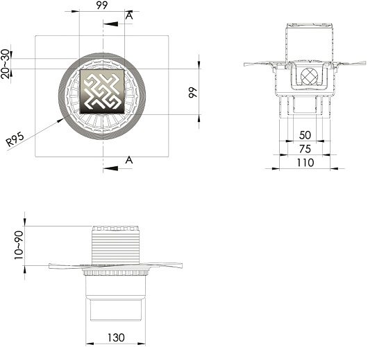 BERGES Wasserhaus Душевой трап Zentrum Antik 100 091464 хром глянец