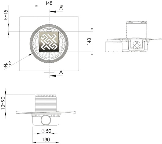 BERGES Wasserhaus Душевой трап Zentrum Antik 150 090365 хром матовый