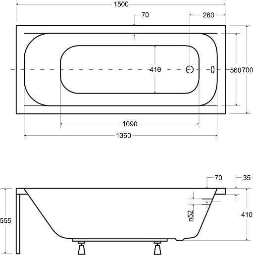 Акриловая ванна Besco Continea 150x70 - арт. WAC-150-PK.