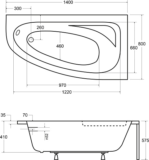 Акриловая ванна Besco Cornea 140x80 P - арт. WAC-140-NP.