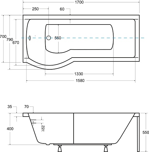 Акриловая ванна Besco Inspiro 170x70 L со шторкой - арт. WAI-170-NLE.