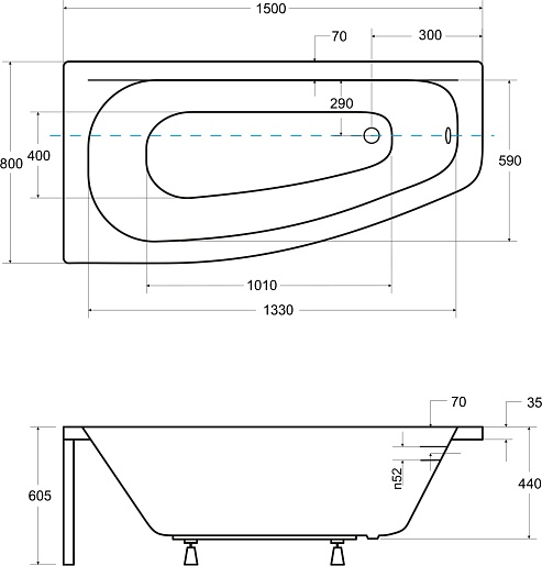Акриловая ванна Besco Luna 150x80 L - арт. WAL-150-NL.
