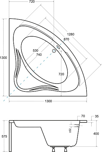 Акриловая ванна Besco Mia 130x130 - арт. WAM-130-NS.