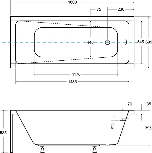 Акриловая ванна Modern 160x70 - арт. WAM-160-MO.
