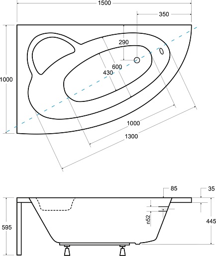 Акриловая ванна Besco Natalia 150x100 L - арт. WAN-150-NL.