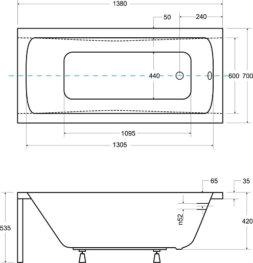 Акриловая ванна Besco Optima 140x70 - арт. WAO-140-PK.