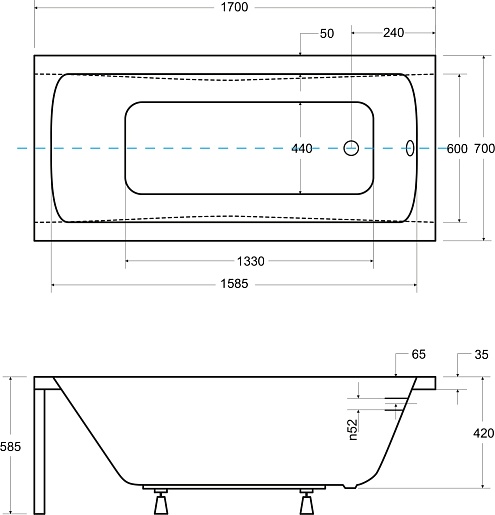 Акриловая ванна Besco Optima 170x70 - арт. WAO-170-PK.