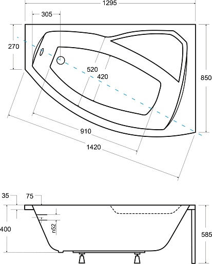 Акриловая ванна Rima 130x85 P - арт. WAR-130-NP.
