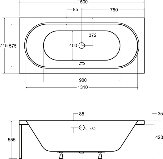 Комплектация: ванна, ножки.