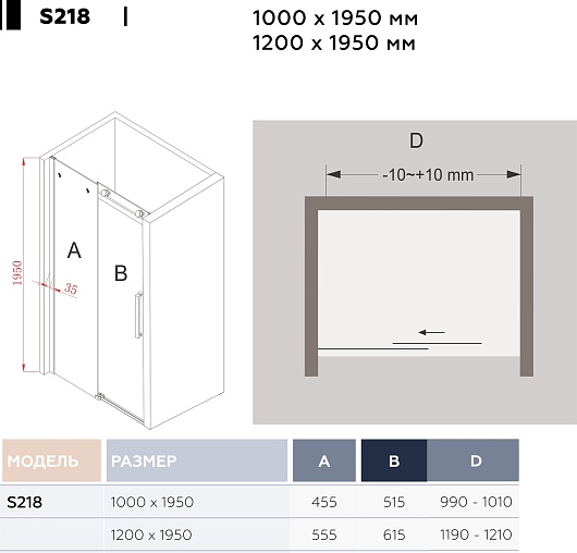 Душевая дверь в нишу Black&White S218 120x195 - 2181200.